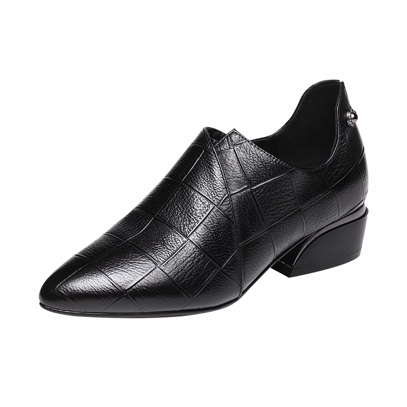 断码 春秋软皮女鞋 清仓 女真皮中跟小皮鞋 子 尖头粗跟深口单鞋