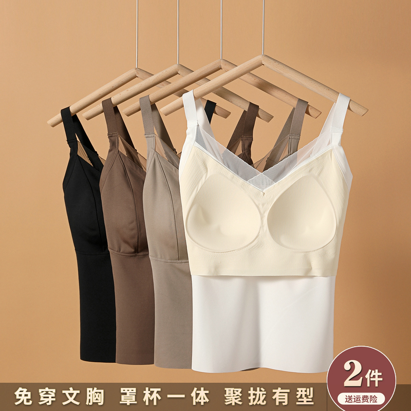 德绒保暖吊带背心女2025新款 秋冬内搭加绒发热无痕带胸垫一体内衣