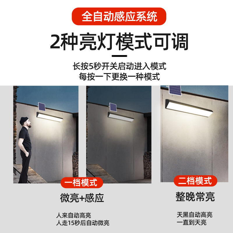 太阳能庭院户外灯室外防水长条露台灯阳台灯LED人体感应超亮壁灯