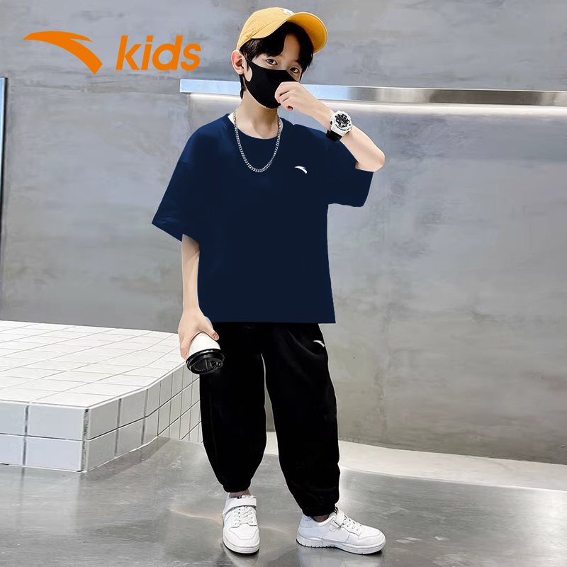 男童短袖 儿童帅气运动服中大童透气夏装 长裤 2025新款 套装 安踏童装