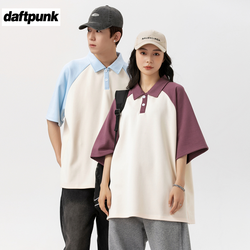 t恤简约百搭青少年上衣插肩袖 港风宽松短袖 潮 男夏季 拼接色polo衫
