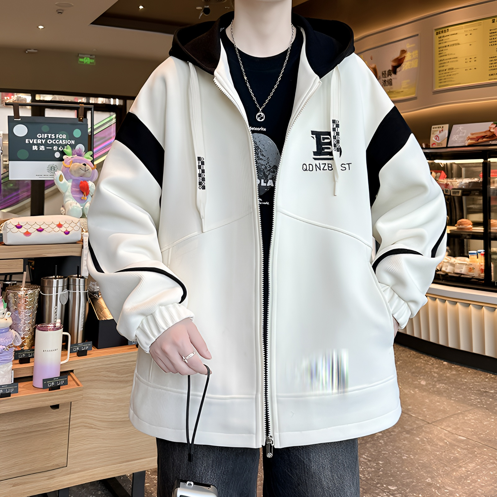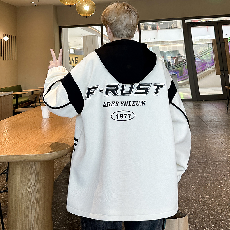 复古 潮流刺绣撞色夹克美式 森马外套女连帽插肩袖 宽松上衣女士秋季