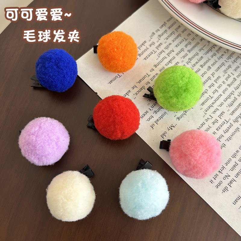 彩色毛毛球球发夹子头饰头发卡子女可爱喜庆表演配饰发饰边夹演出