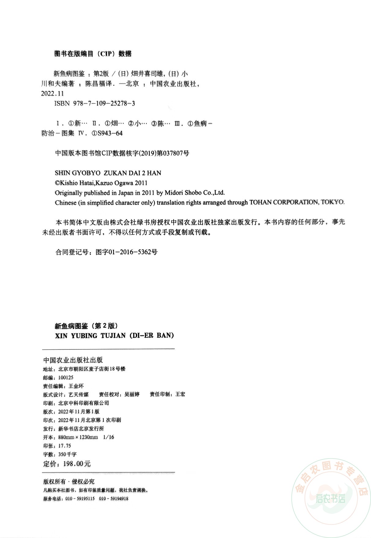 日 9787109252783 畑井喜司雄主编 小川和夫编著 鱼病诊疗彩色图谱 新鱼病图鉴 陈昌福译 第2版