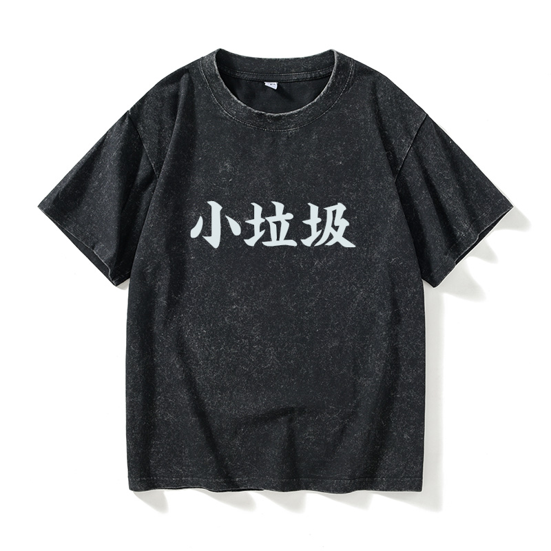 情侣装 文字小垃圾汉字中文T恤短袖 宽松夏季 衣服女男圆领大码 个性