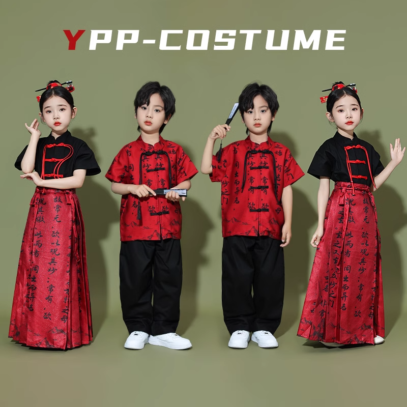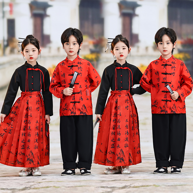 元 旦六一儿童啦啦队演出服汉服书法合唱表演服女童马面裙诗歌朗诵