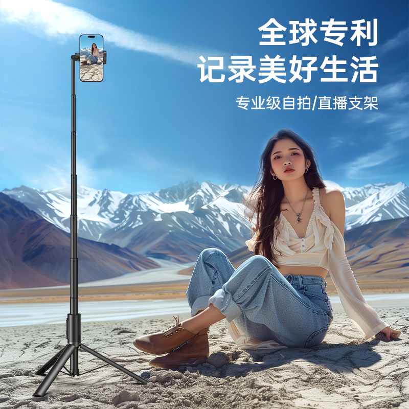 升维2025新款 自拍杆三脚架拍照神器手持防抖360度旋转补光便携手机直播落地支架蓝牙vlog旅游户外通用拍摄