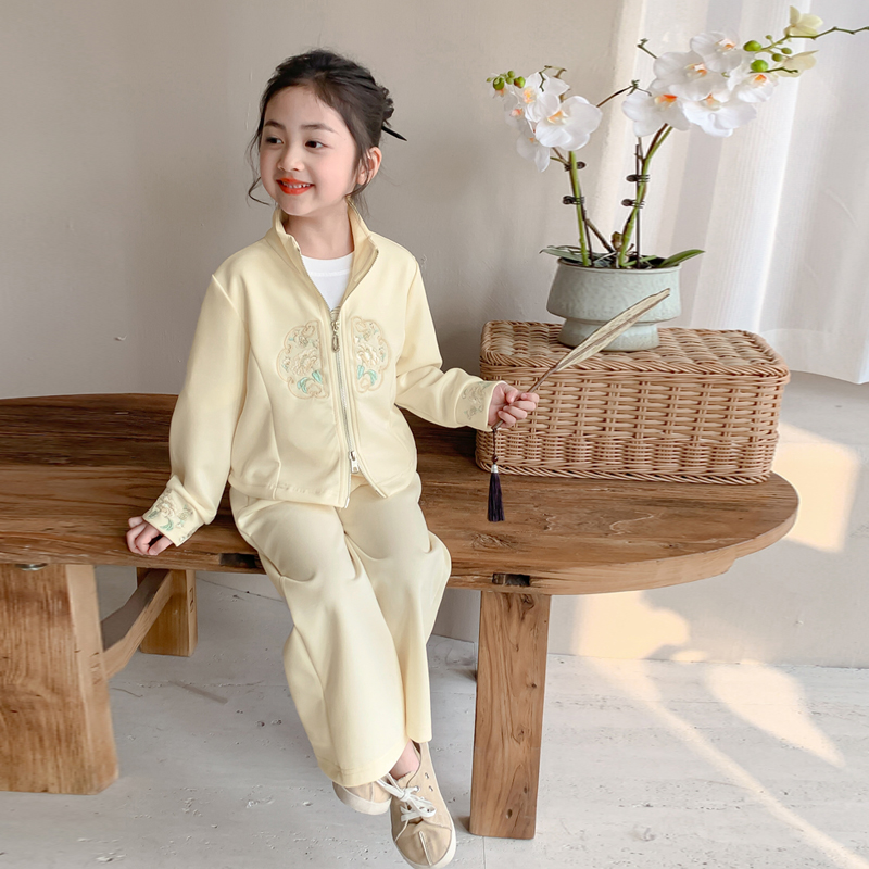 套装 叠穿内搭T恤木耳边牛仔阔腿裤 新款 蓝色镂空针织背心裙女秋季