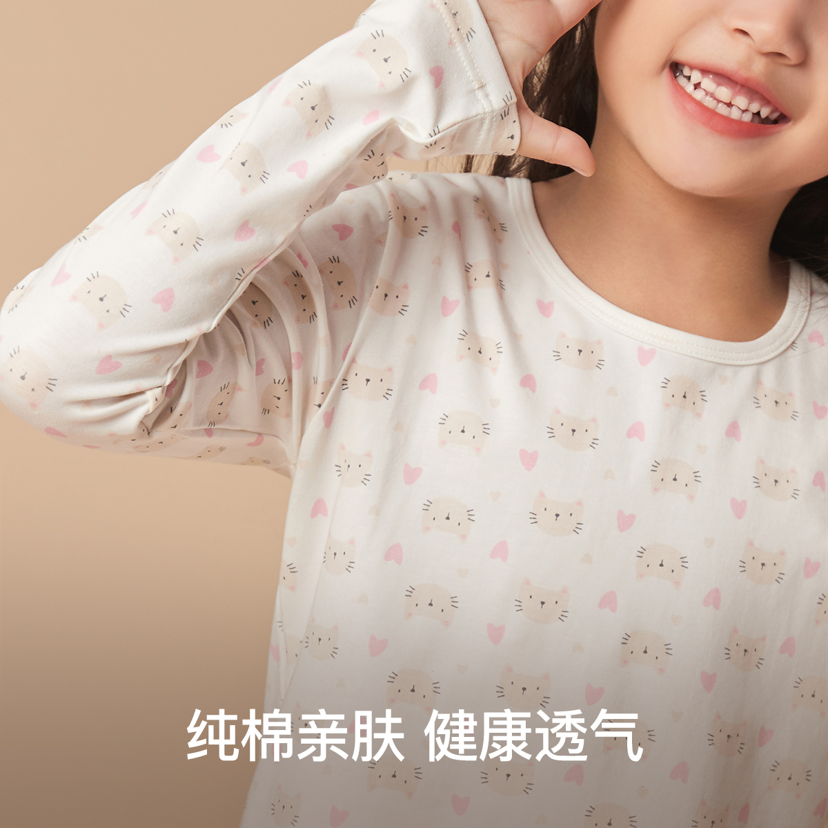 睡衣女孩圆领柔软套装 林卡春秋款 女童家居服棉质甜心猫咪印花长袖