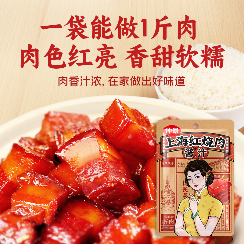 仲景上海红烧肉酱汁家常菜红烧排骨猪蹄预制菜酱料包100g小炒麻辣