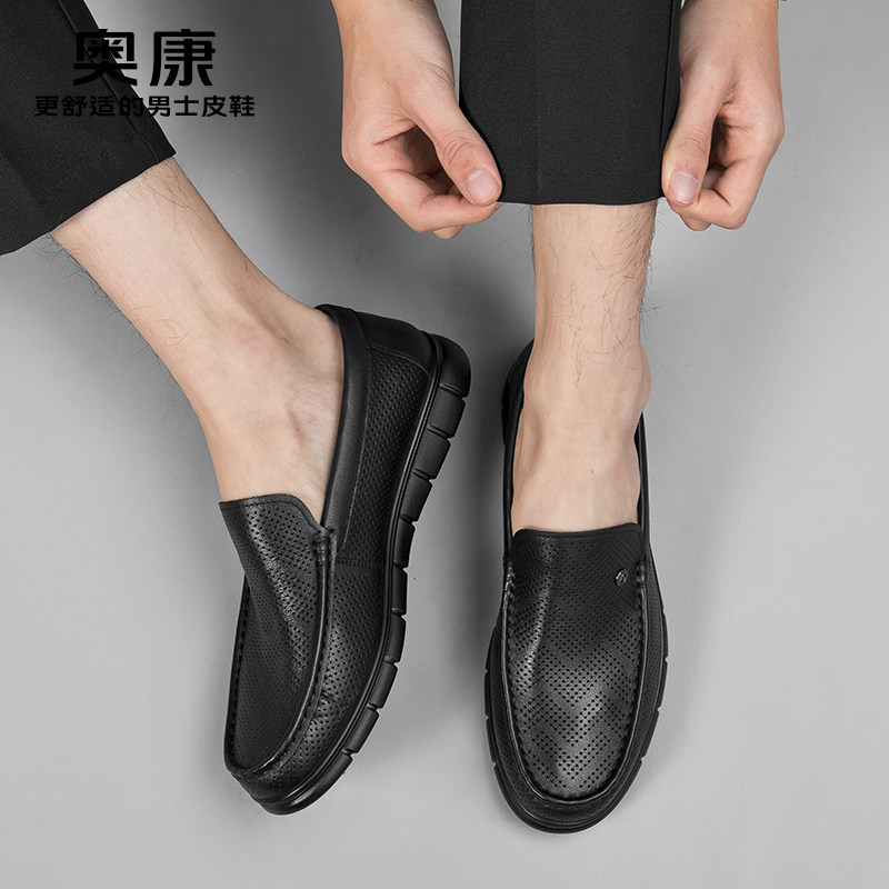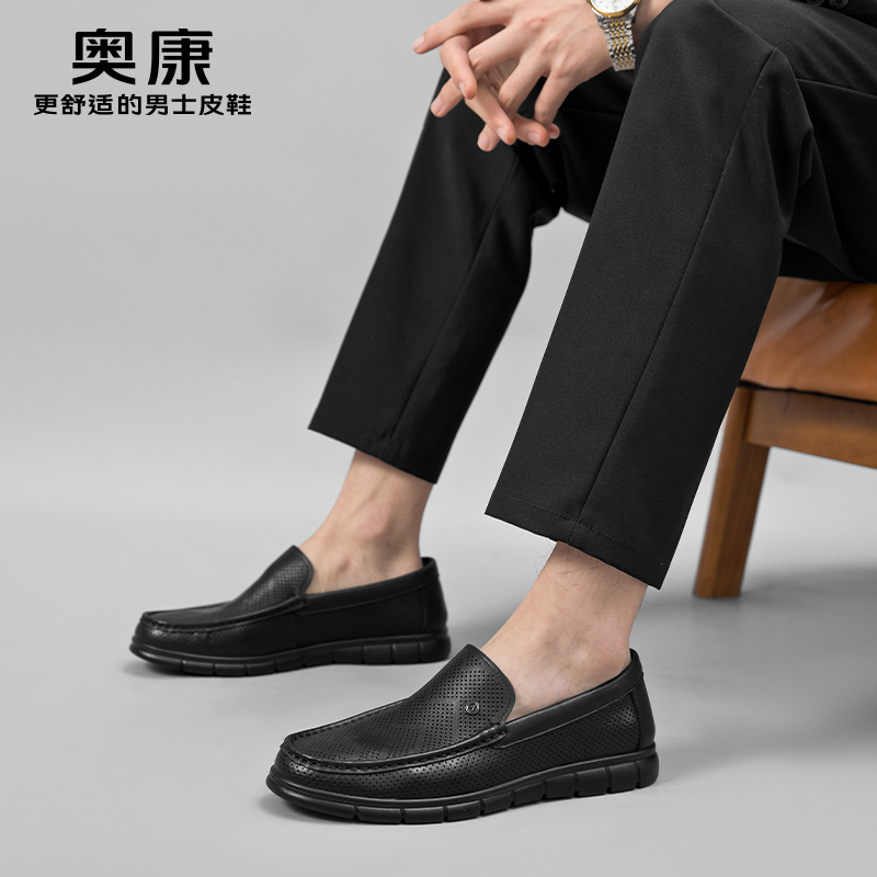 秋季 真皮透气软底舒适爸爸鞋 皮鞋 中年商务休闲皮鞋 男士 老人头男鞋