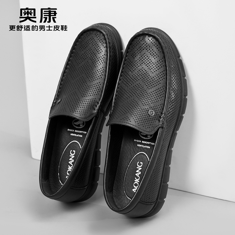 男真皮秋季 透气厚底商务休闲皮鞋 中老年爸爸鞋 男鞋 大码 老人头皮鞋