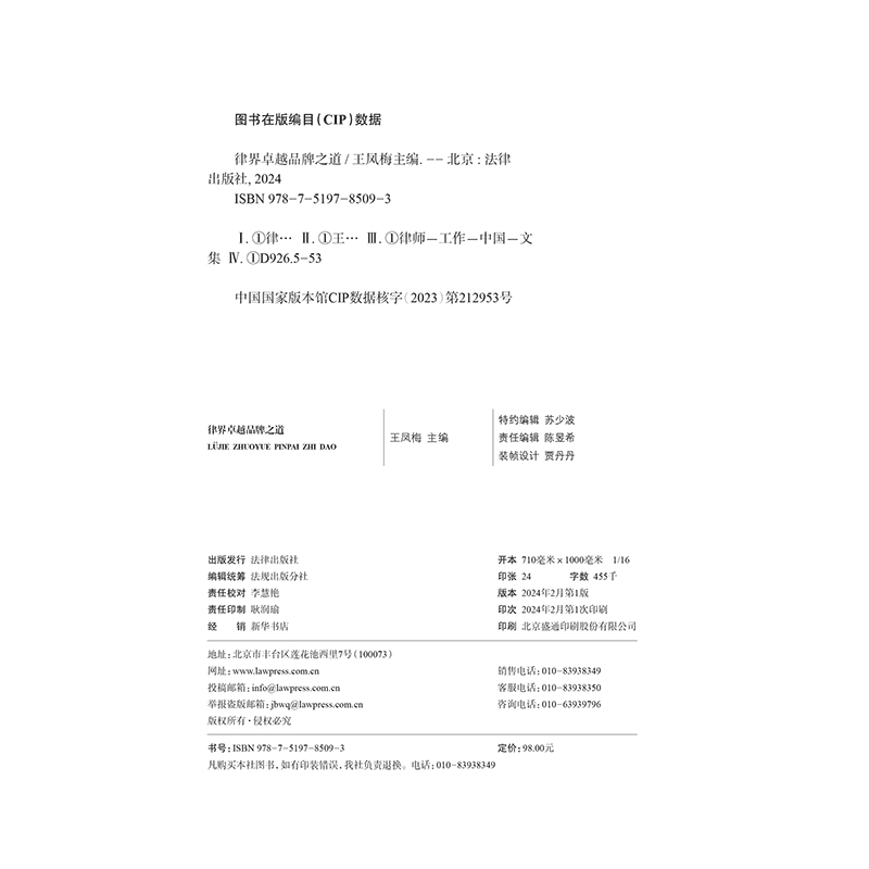 王凤梅主编 律界卓越品牌之道 中国律界品牌建设 律新社 社9787519785093 正版 法律出版 2024新书