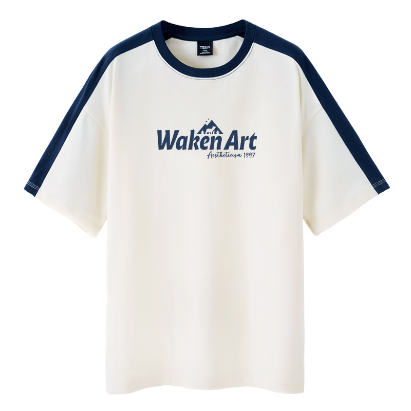 T恤 TEEK夏季 男款 拼色短袖 纯棉日系潮牌复古奶茶色宽松上衣服 新款