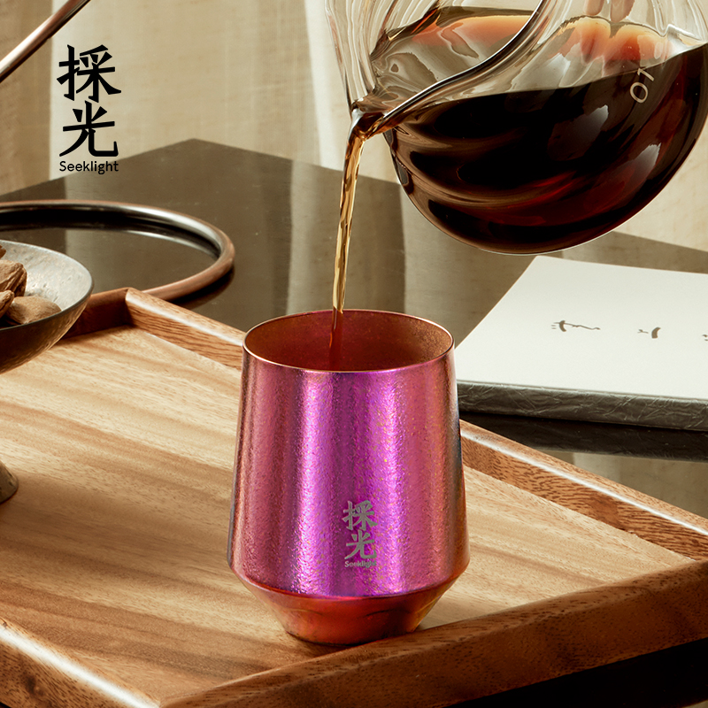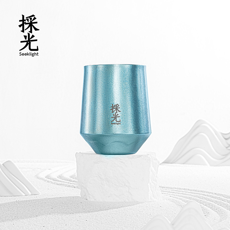 採光纯钛水杯双层真空隔热办公室国风高颜值礼物咖啡牛奶杯啤酒杯