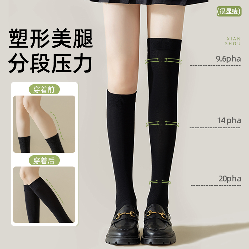 压力小腿袜女夏季 强压显瘦高筒过膝袜黑色长筒JK袜子半筒瘦腿 薄款
