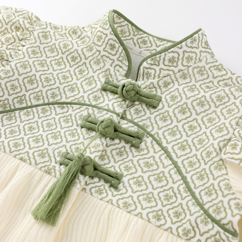 婴儿衣服秋装 新生女宝宝连体衣满月百天周岁礼服抓周爬服 国风中式