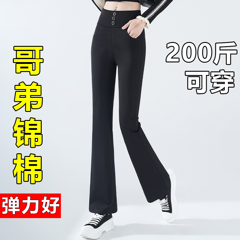 微喇叭裤 显瘦休闲裤 女高腰显瘦黑色大码 子200斤胖mm修身 裤 春秋季