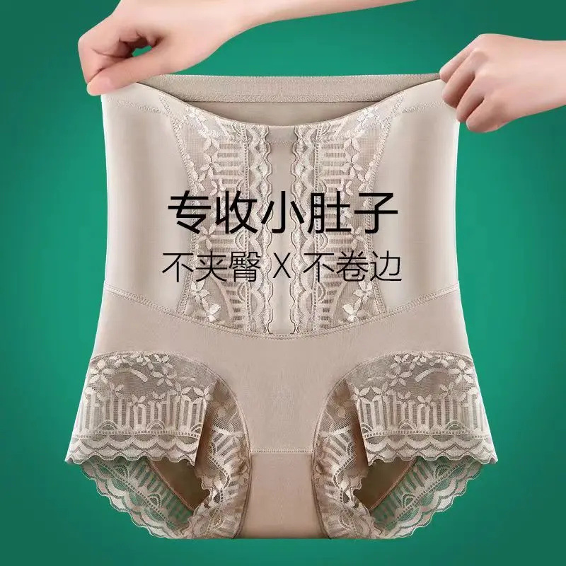 无痕束腰塑身提臀高腰内裤 大码 薄款 收腹收小肚子夏季 女 蕾丝收腹裤