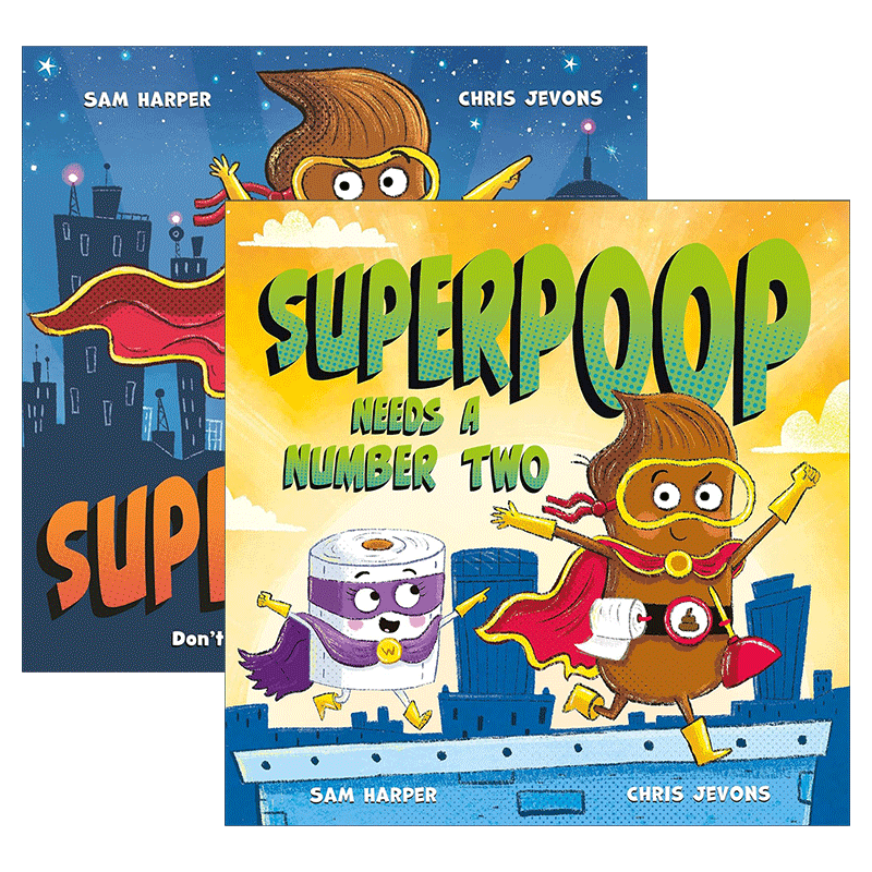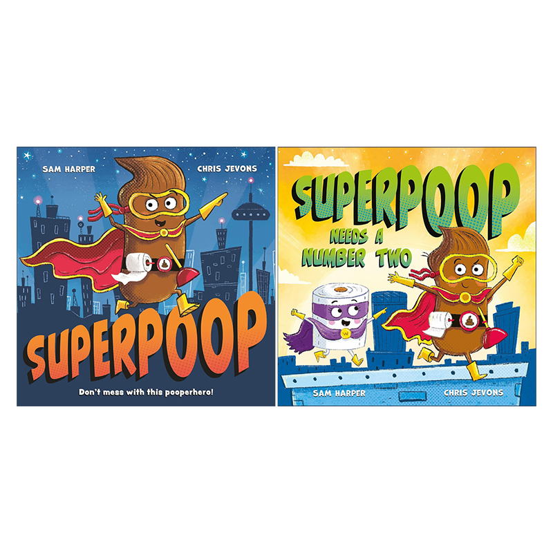 儿童幽默搞笑绘本 插画师Chris Jevons 英文原版 进口英语原版 大便超人系列2册 英文版 书籍 Superpoop