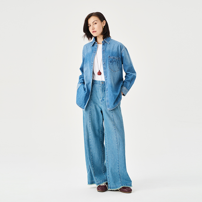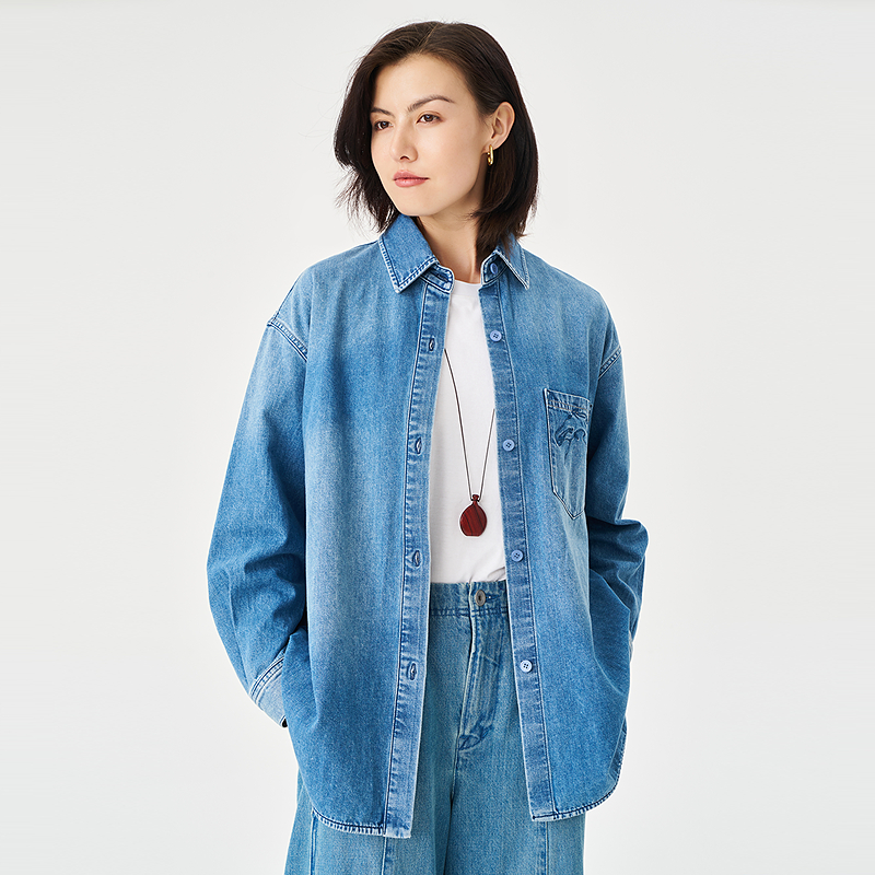 日系水洗复古潮牌痞帅工装 男2025秋季 衬衣外套 牛仔衬衫 hansca长袖