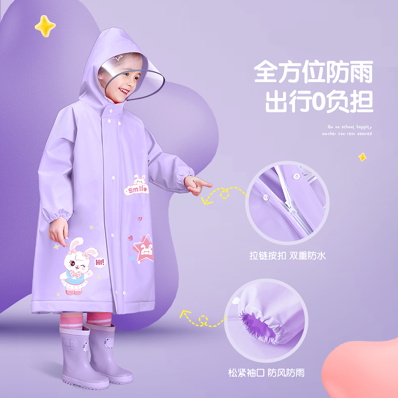 备美儿童雨衣小学生上学专用女孩男童2025新款 防暴雨带书包位雨披