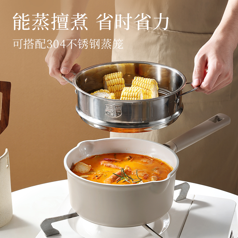 卡罗特陶瓷小奶锅不粘锅婴儿煎煮一体家用一人食泡面锅宝宝辅食锅