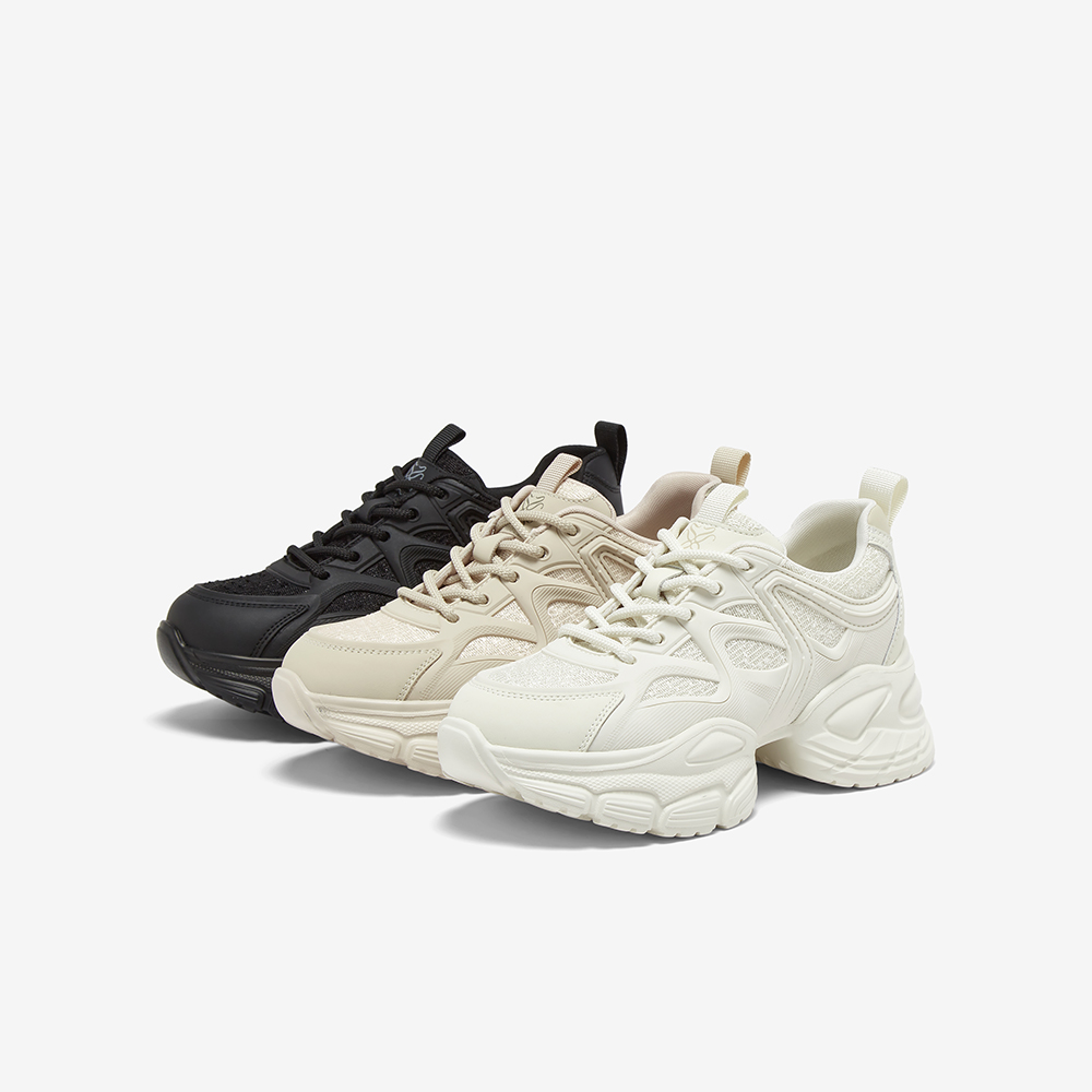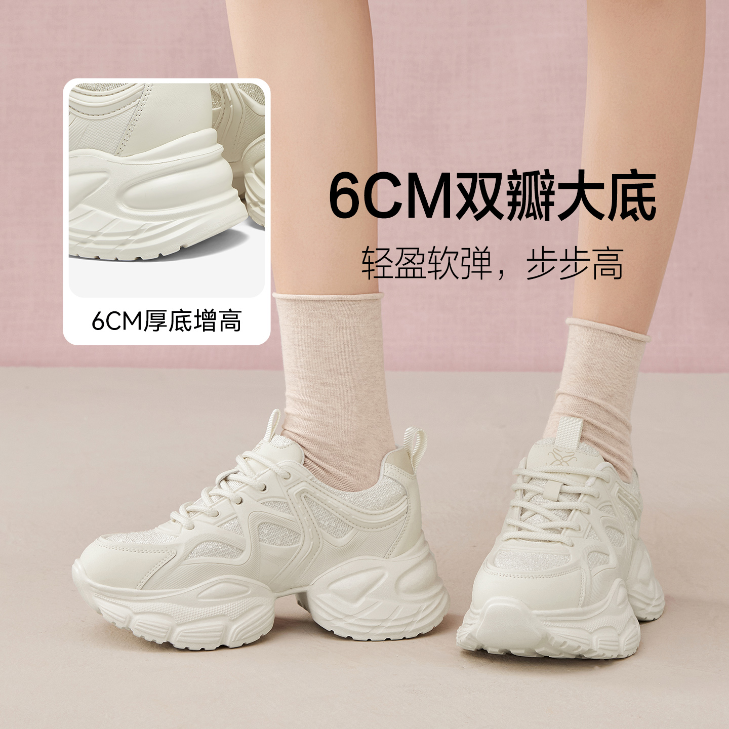 2025秋季 骆驼女鞋 新款 休闲透气老爹鞋 女 厚底增高银色运动鞋 银熠
