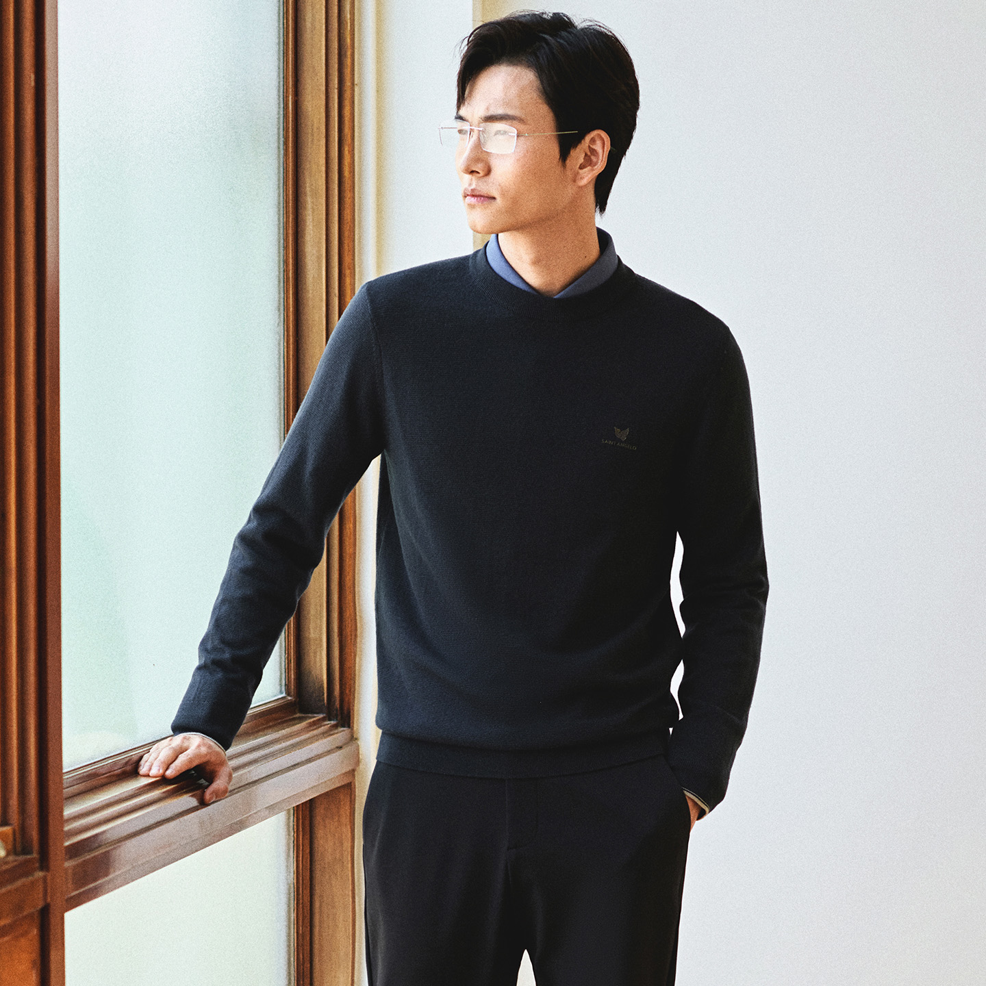 男士 柒牌翻领毛衫 2025秋冬中年爸爸保暖羊毛针织衫 加绒假两件