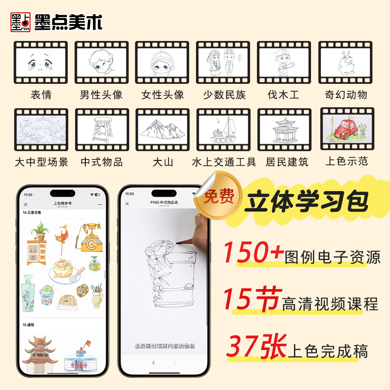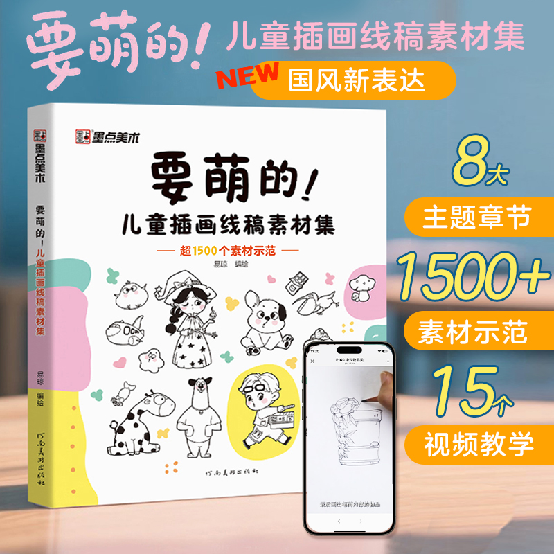 墨点儿童插画线稿素材集儿童创意插画教程图集图册视频教学铅笔素描动物植物人物建筑场景主题简笔画绘画教程图集零基础自学画画