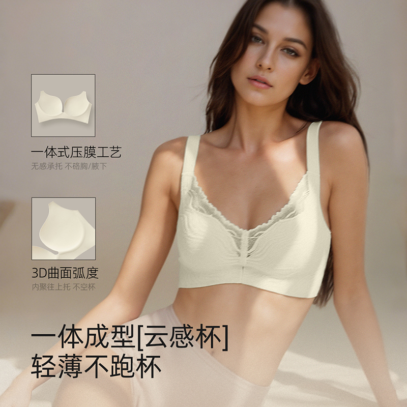 猫人无痕内衣女大胸显小提拉防下垂聚拢收副乳裸感舒适全罩杯文胸