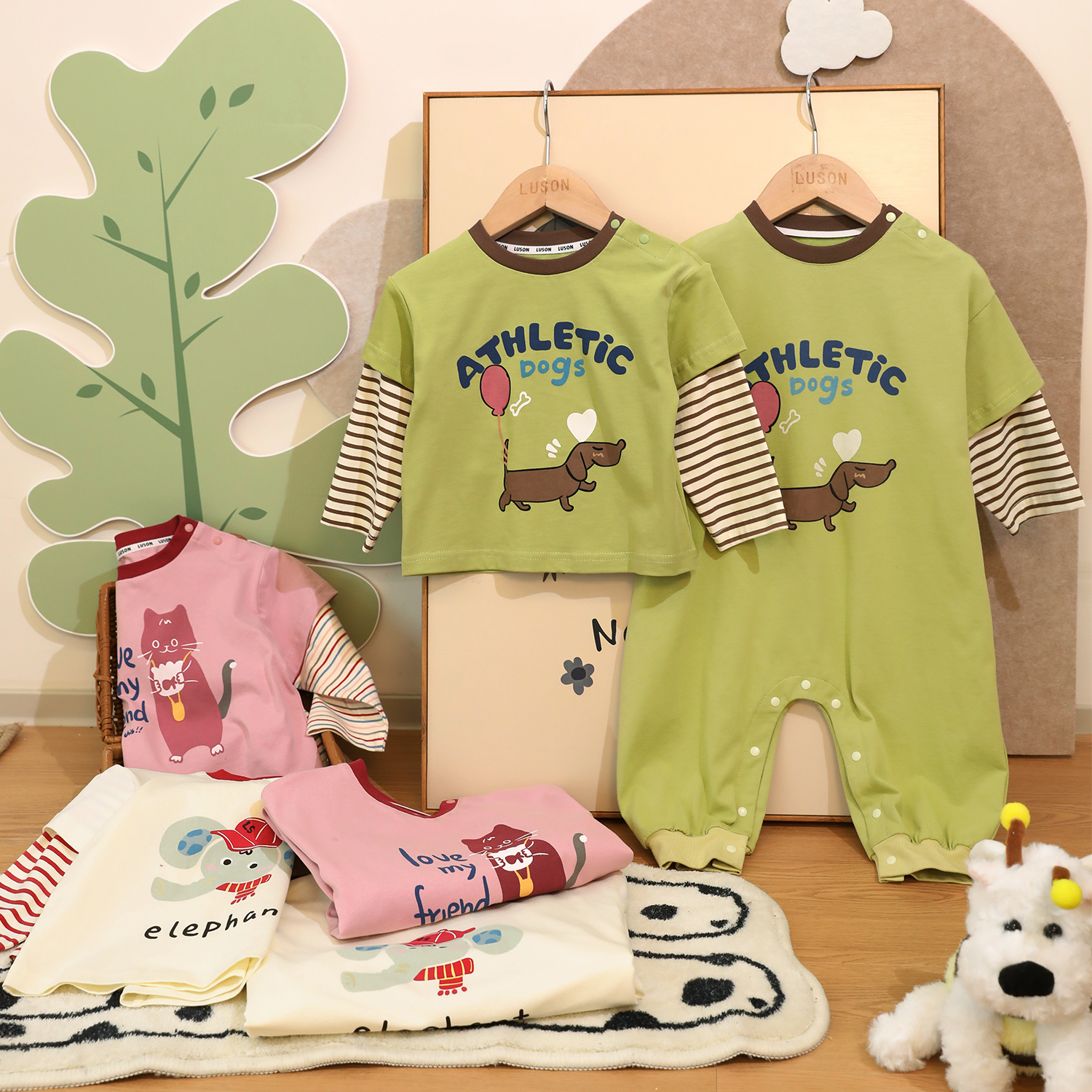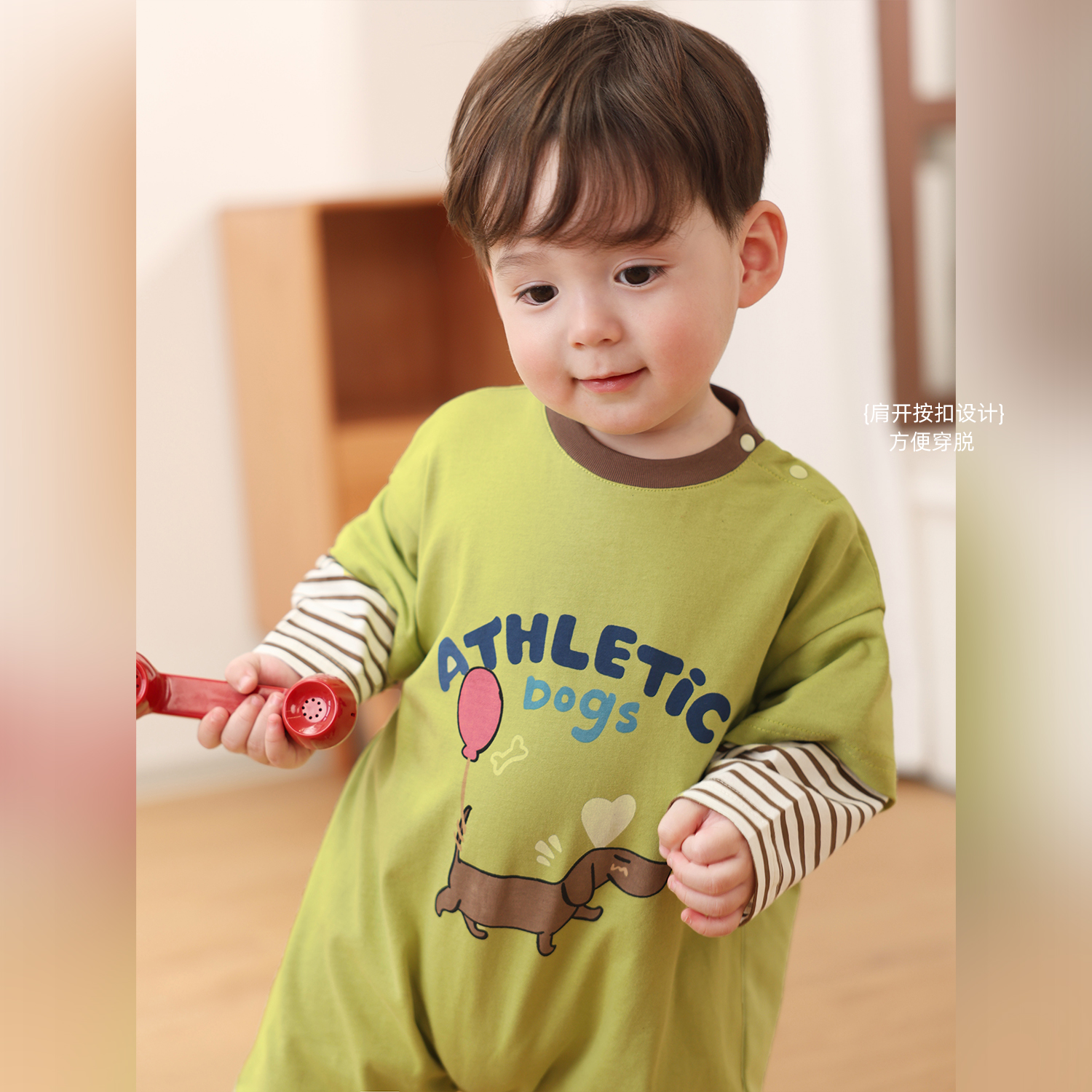 长袖 2025年新款 连体衣婴儿爬服 男宝宝假两件哈衣长袖 小O爸婴童