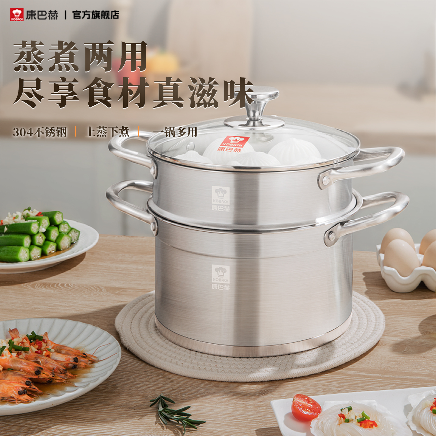 康巴赫汤锅304不锈钢加厚家用蒸锅煮粥锅煮锅蒸煮燃气电磁炉炖锅