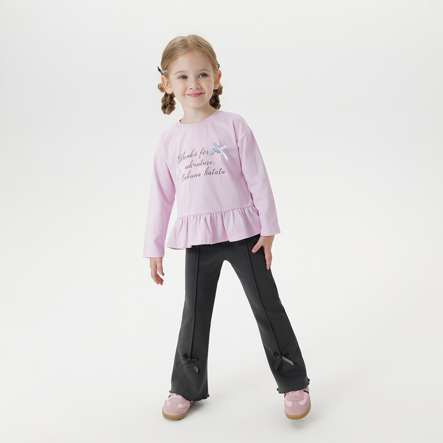 新款 子2025年秋装 551320 宝宝裤 马克珍妮女童立体蝴蝶结轻弹微喇裤
