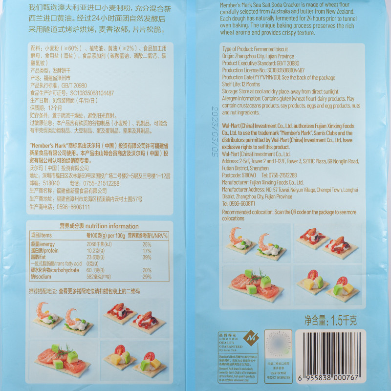 咸味薄饼干休闲网红 Mark代购 山姆超市海盐苏打饼干Member& x27;s