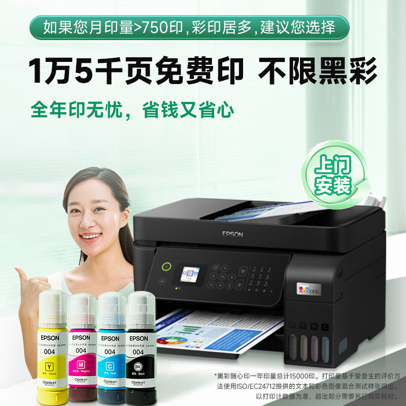 打印复印扫描传真多功能一体机 爱普生Epson L565升级款 L5298彩色无线喷墨打印机 自动进纸连续复印 L5198