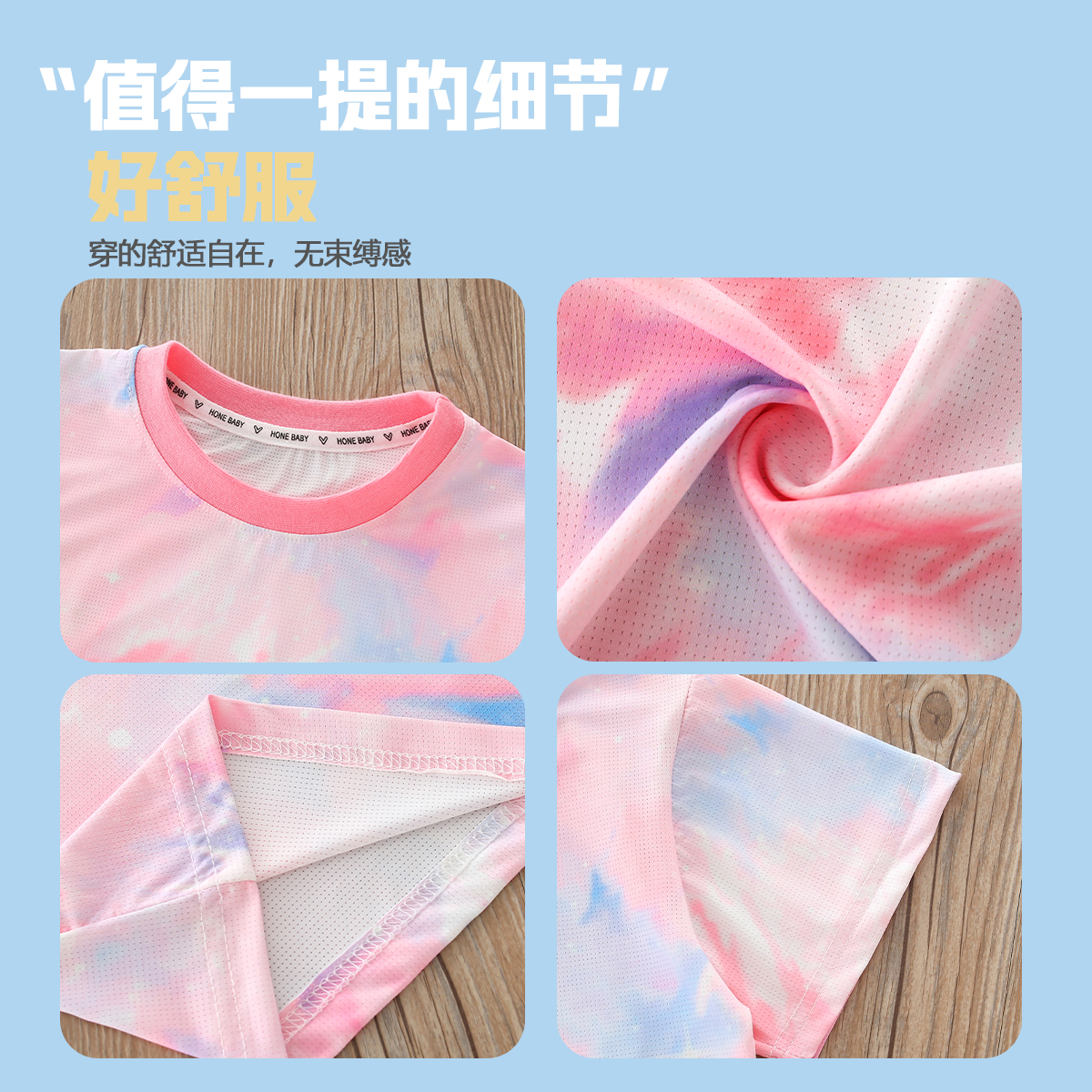 T恤中大童速干透气运动女童宝宝上衣童装 新款 潮 2025夏季 扎染短袖