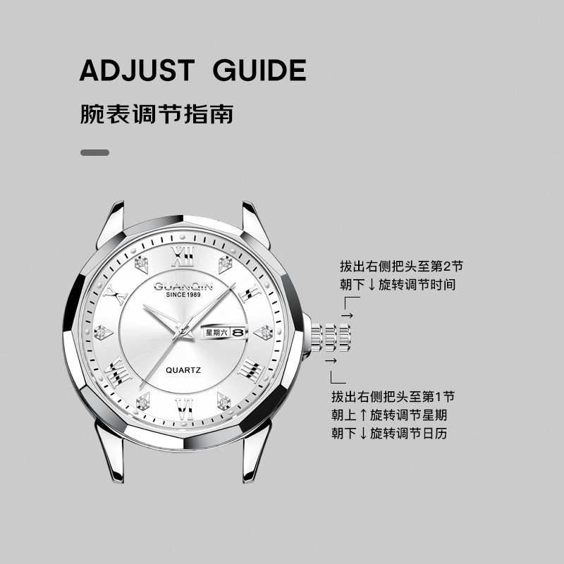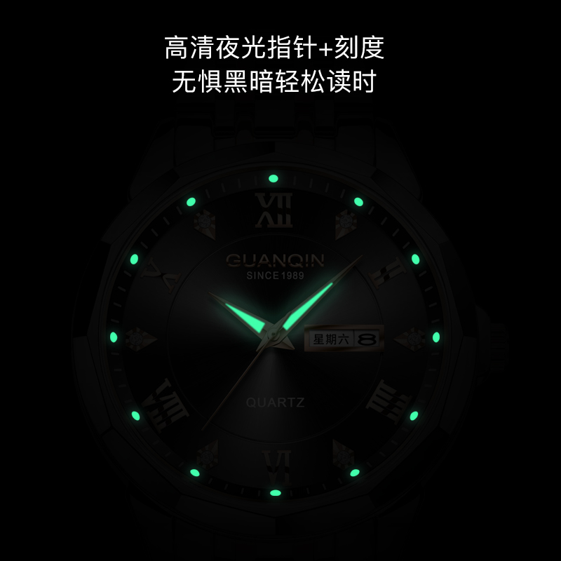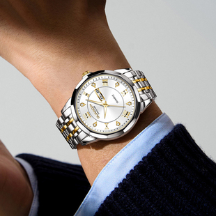 手表时尚 男士 夜光防水双日历腕表情侣腕表送礼物 新款 瑞士冠琴正品