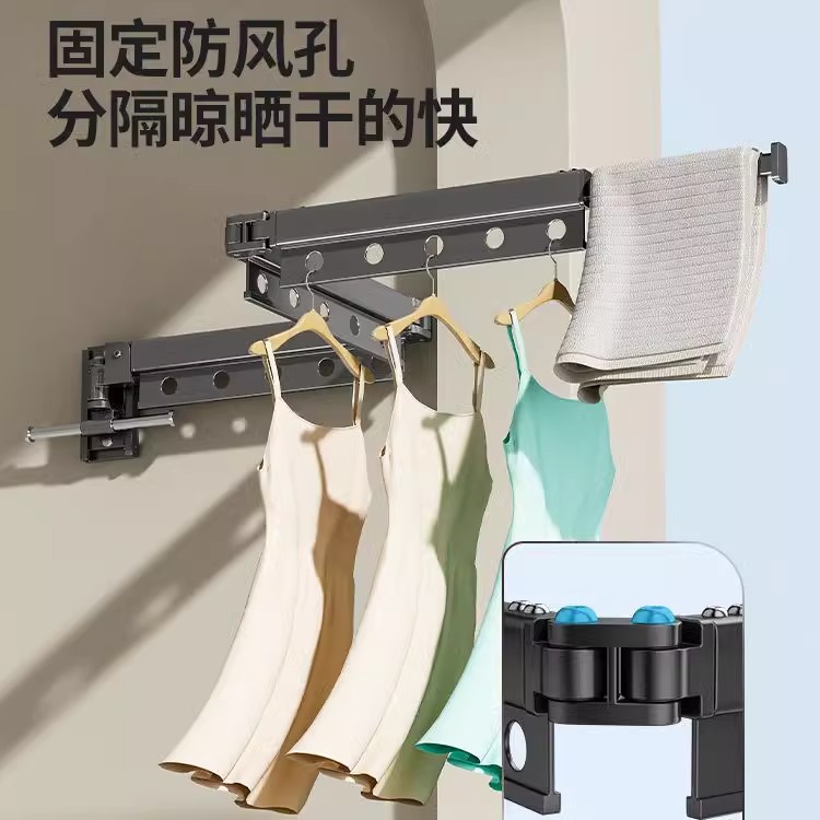 晾衣架阳台家用晾衣杆折叠伸缩凉挂杆晒被子神器晒壁挂式 隐形飘窗