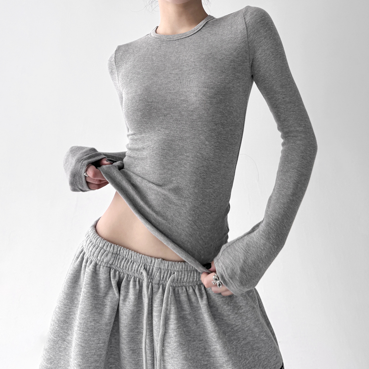 美式 内搭外穿短款 辣妹长袖 高弹力打底衫 上衣 T恤女基础款 2025新款