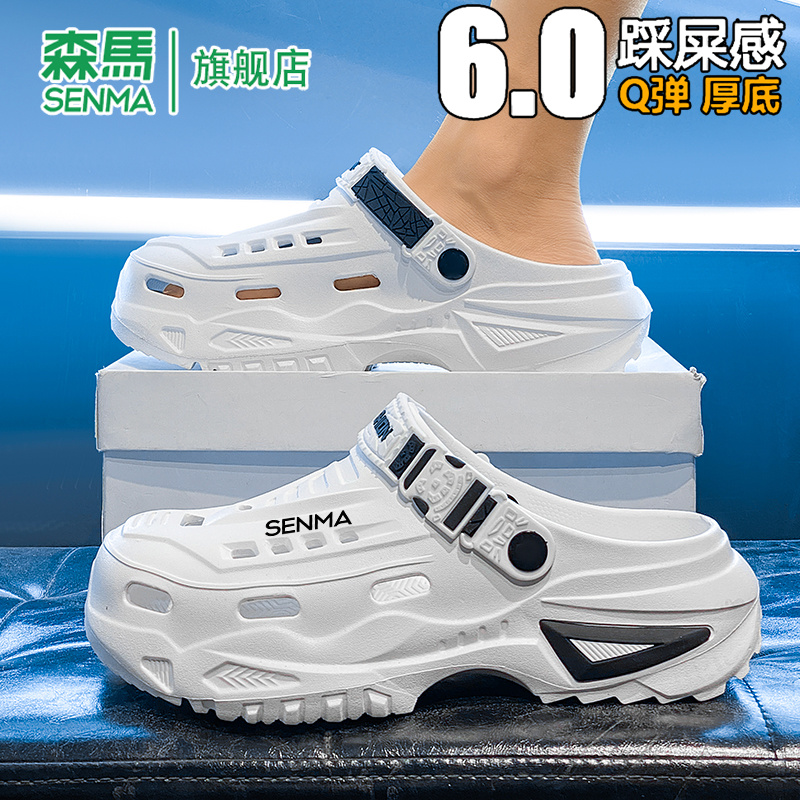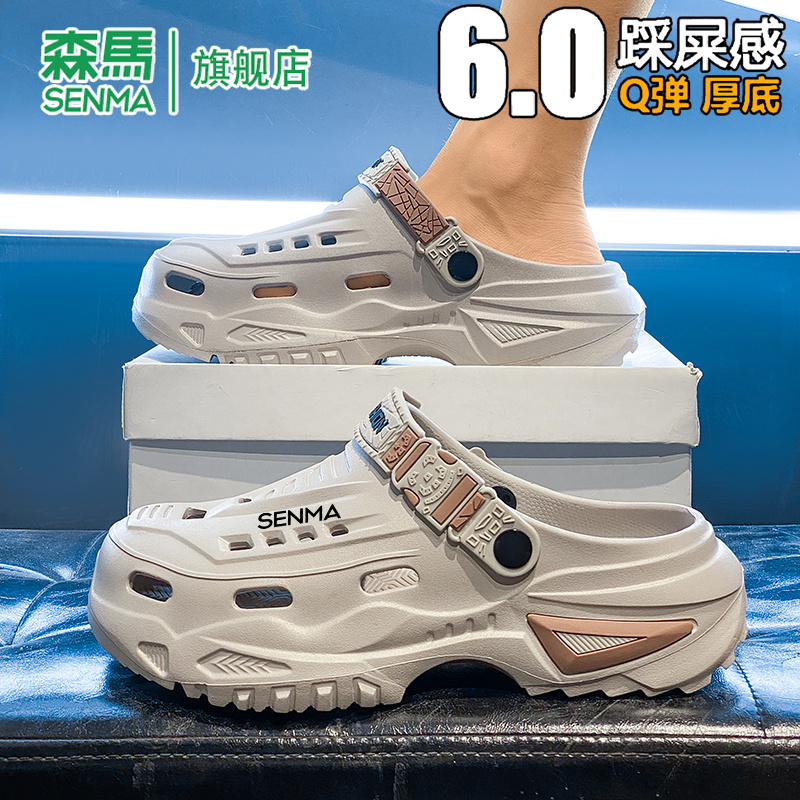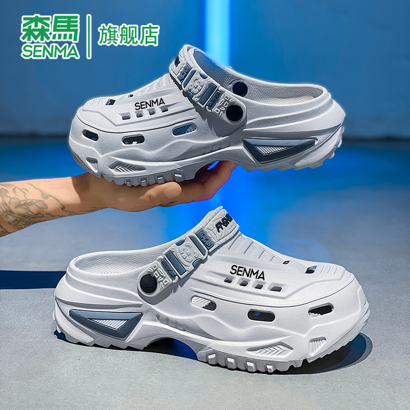 凉鞋 森马洞洞鞋 运动开车两用厚底增高男士 外穿防滑包头拖鞋 男夏季
