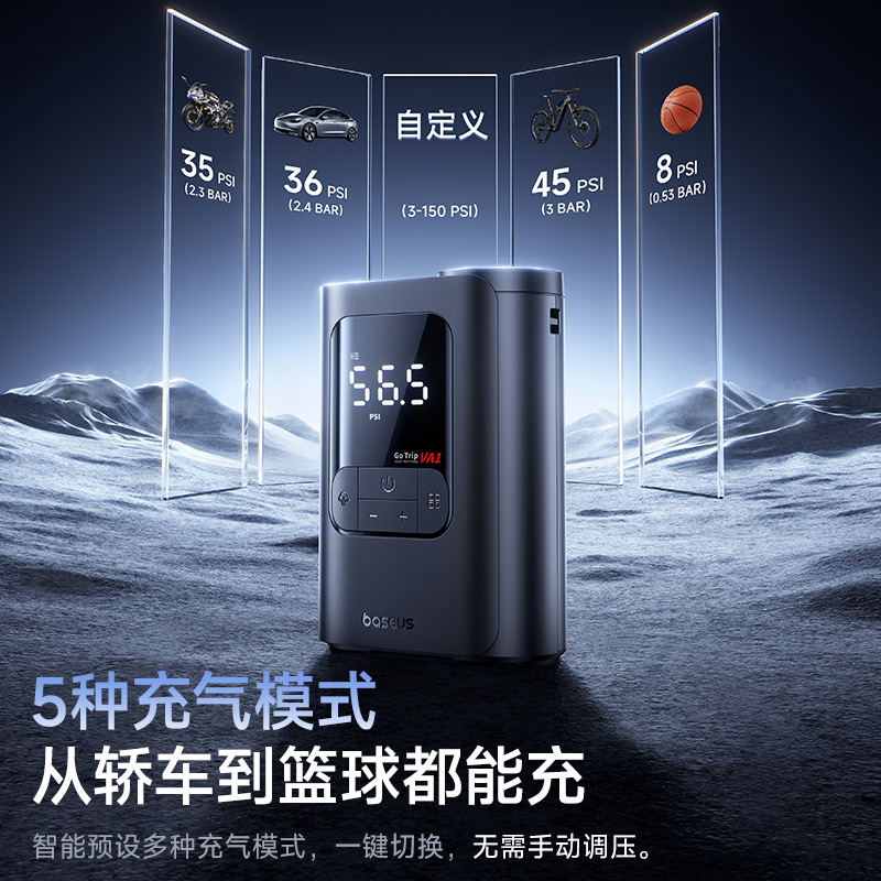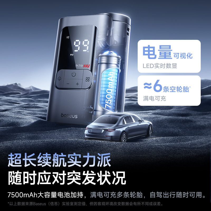 倍思车载充气泵电动便携汽车打气泵便携式 车用打气筒轮胎带测胎压