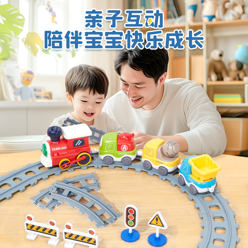 儿童电动蒸汽小火车玩具轨道车磁力小汽车仿真工程车模型益智男孩