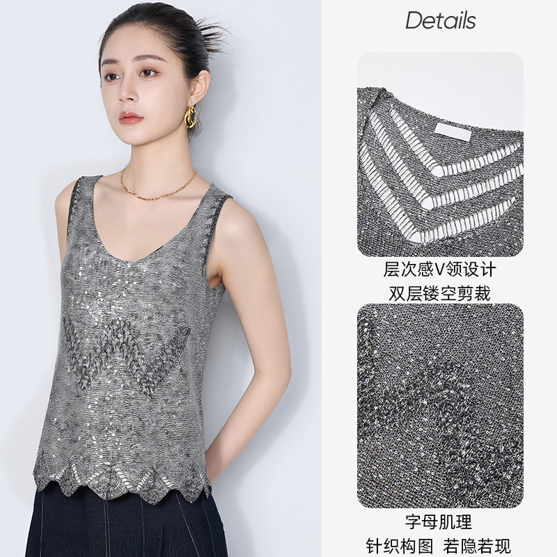 大码 V领针织吊带背心女夏季 上衣打底衫 内搭冰丝外穿无袖 胖mm 西装
