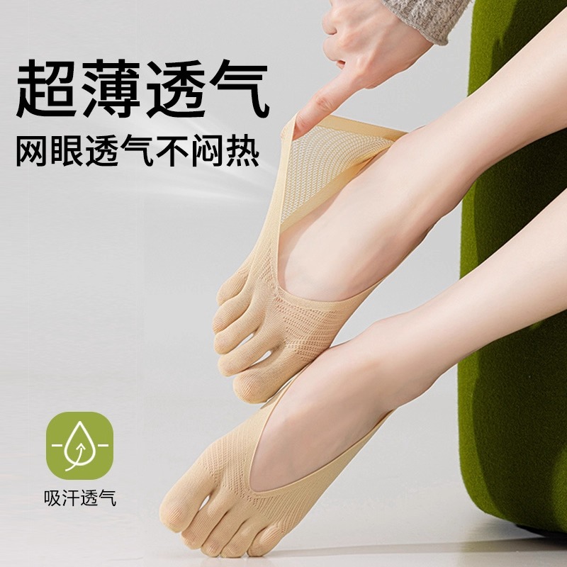 五指袜女防滑船袜浅口隐形不掉跟夏季 分趾袜女士短袜防臭吸汗 薄款