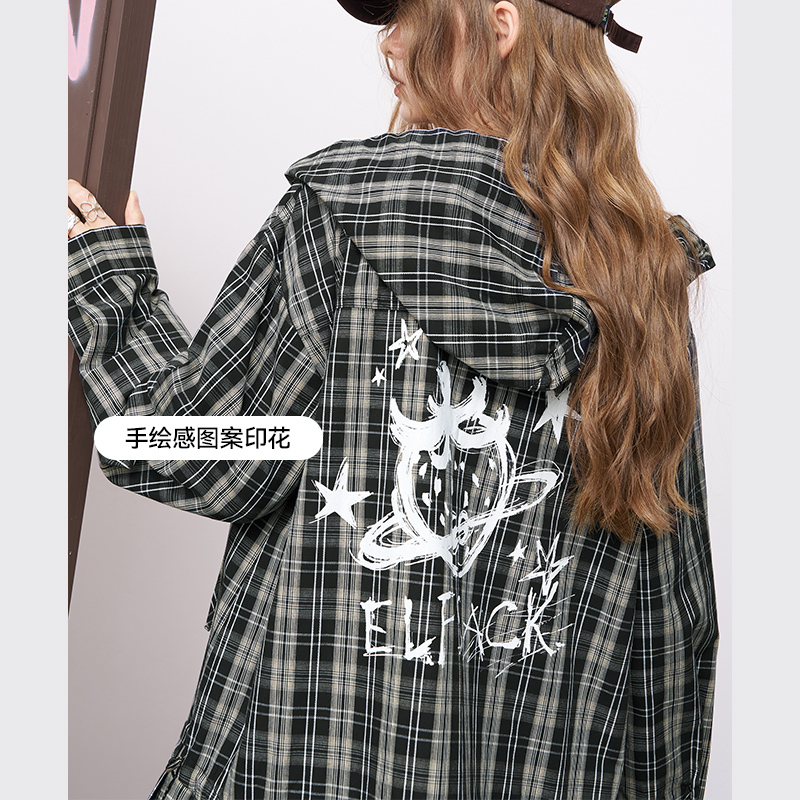 设计师款 裙女细格纹花边立领半开襟连衣裙18465227 佐丹奴宽松衬衫