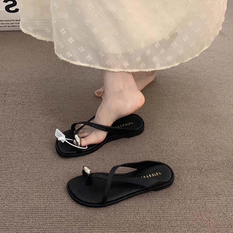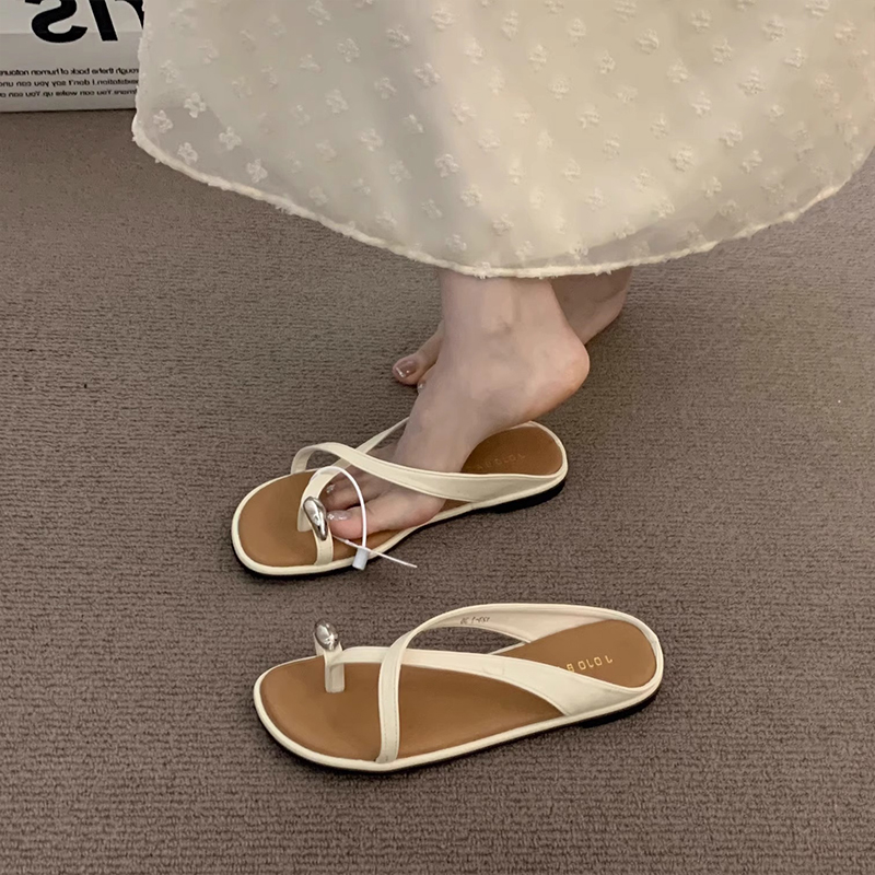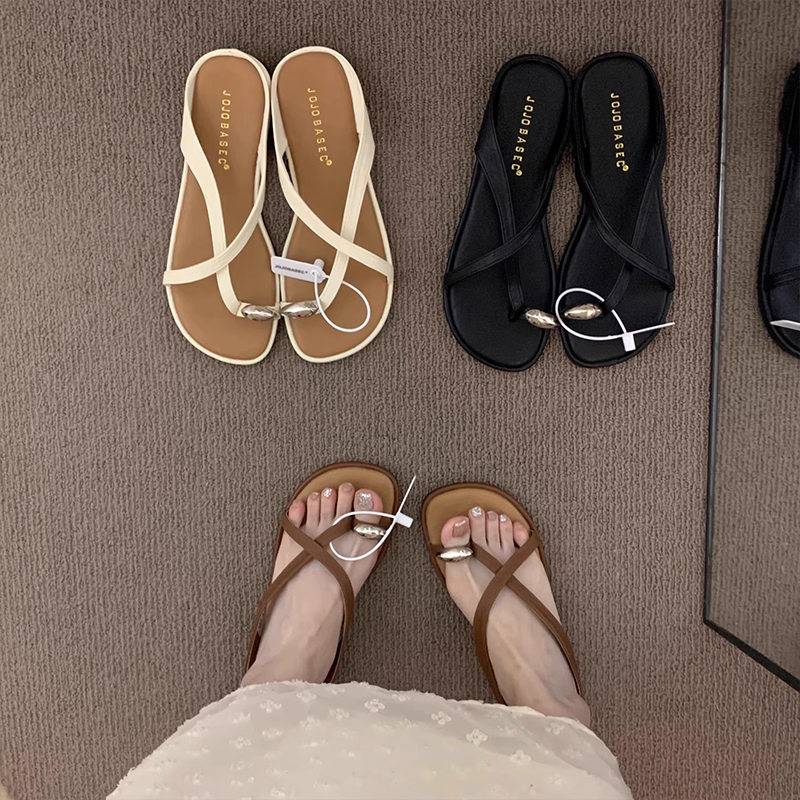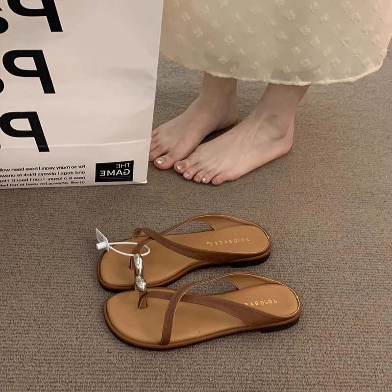 露趾平底度假凉拖鞋 晚晚风夏季 子2025新款 棕色鞋 仙女高级复古凉鞋