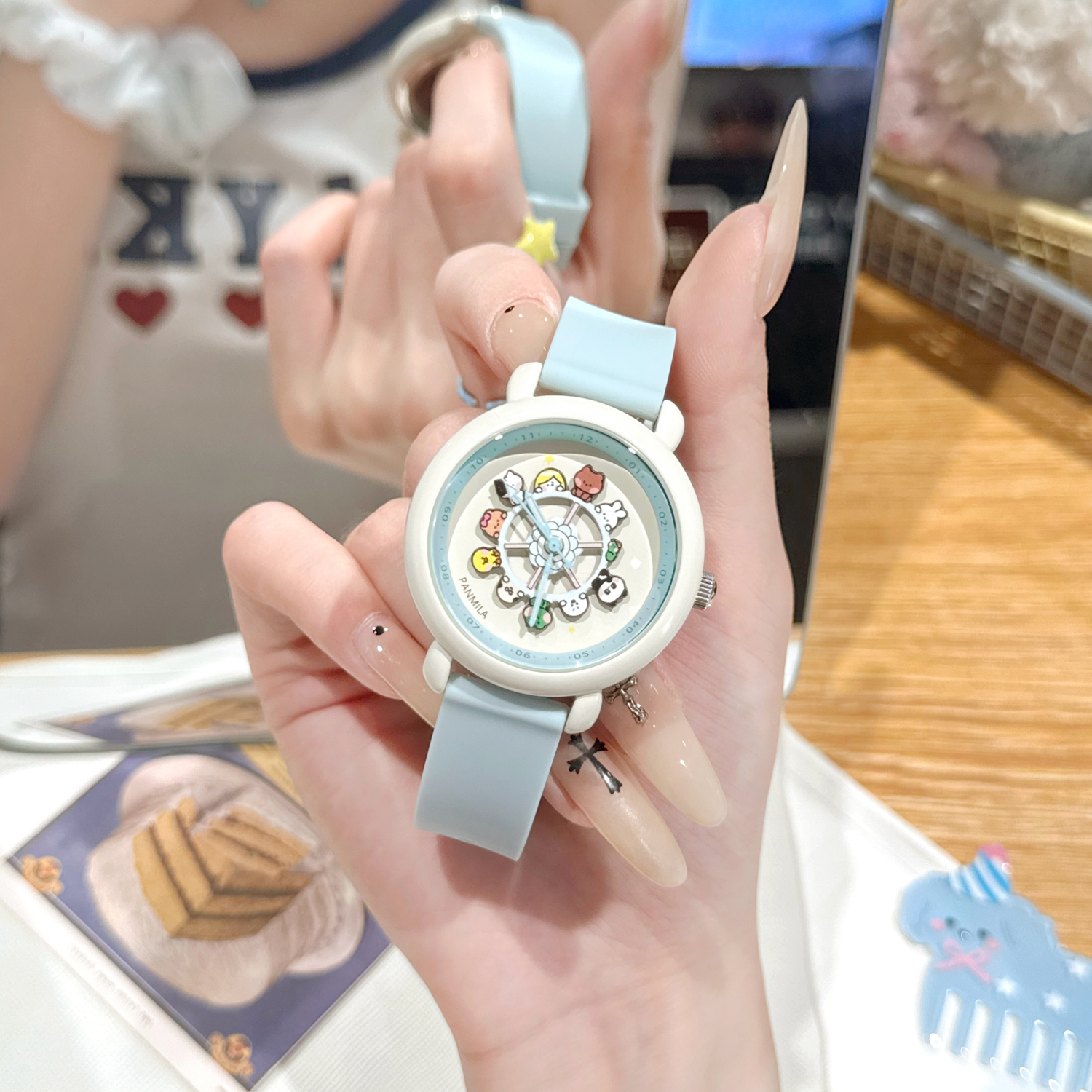 番米拉旋转摩天轮情侣手表女款 学生初高中女儿童石英表女孩初中生