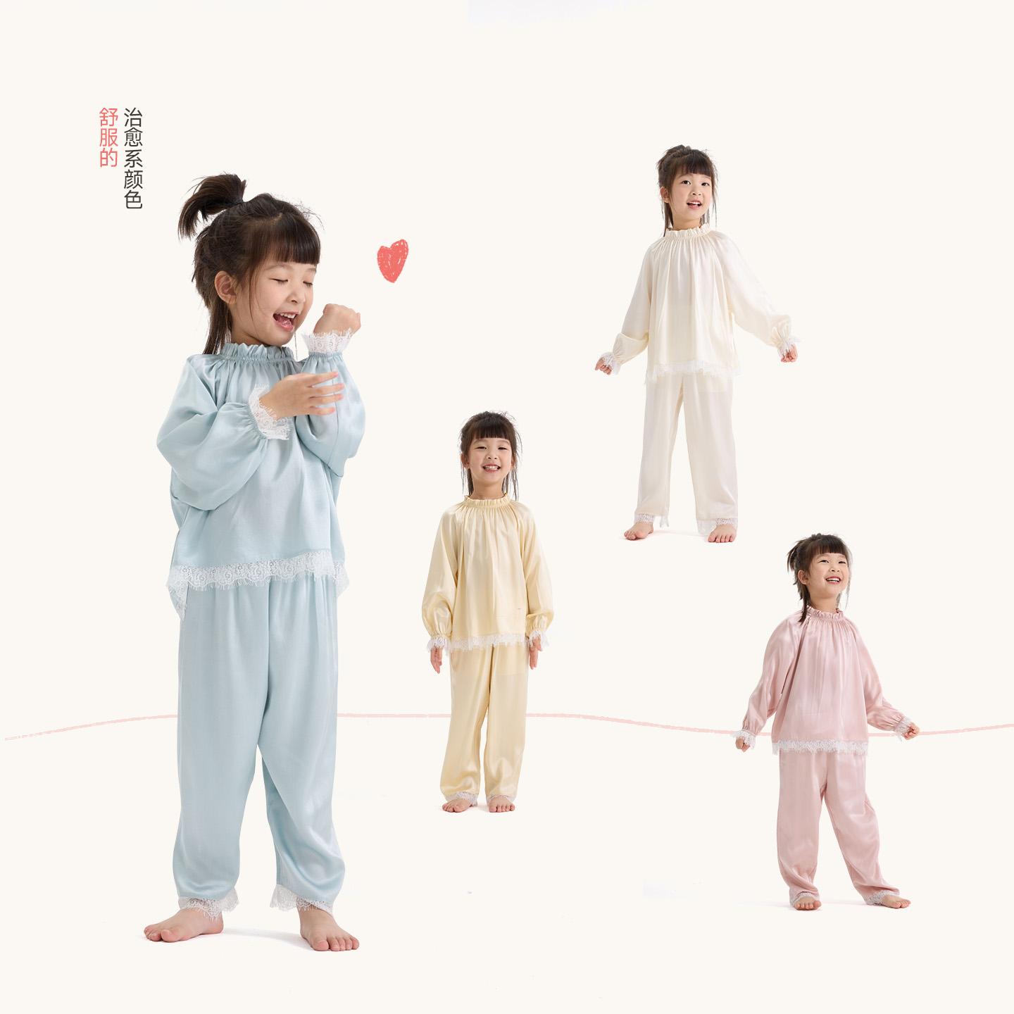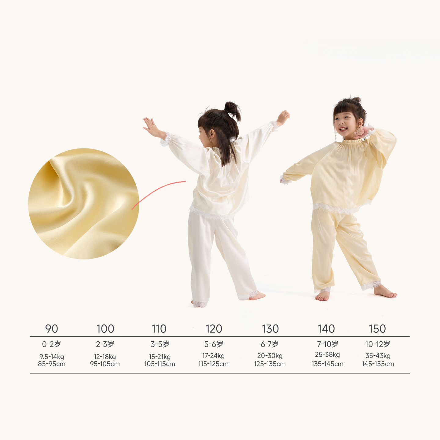 Q21儿童真丝睡衣女童6A级100%桑蚕丝可机洗儿童家居服套装 蕾丝款