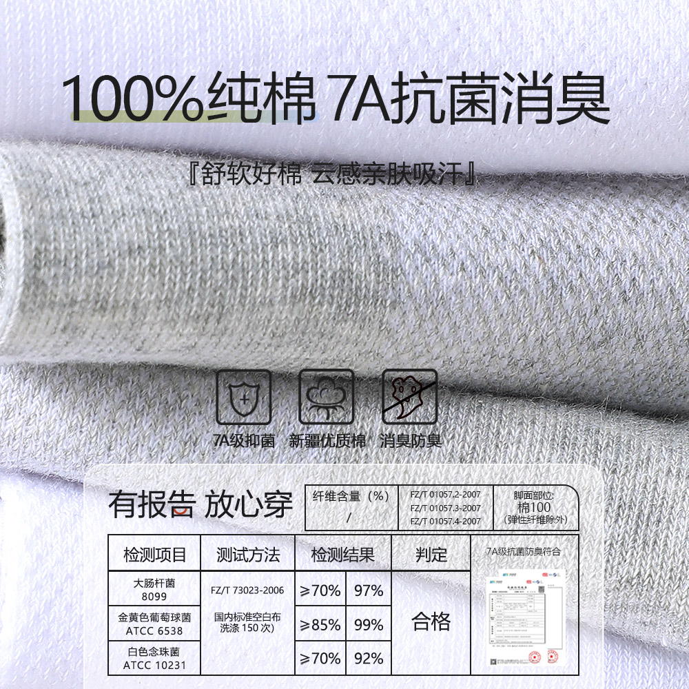 袜子男纯棉春秋款 中筒袜 短袜7a抗菌灰色无骨防臭脚吸汗青少年男士